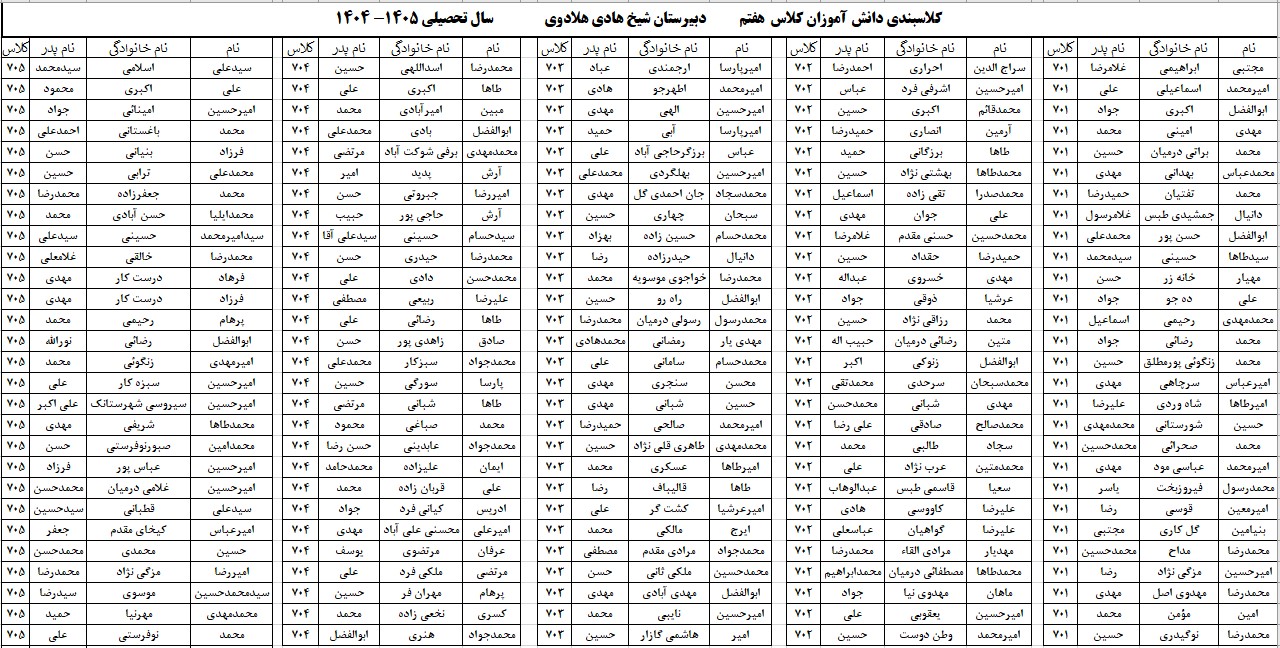 کلاس بندی دانش آموزان دبیرستان شاهد شیخ هادی هادوی در سال تحصیلی 1404-1403